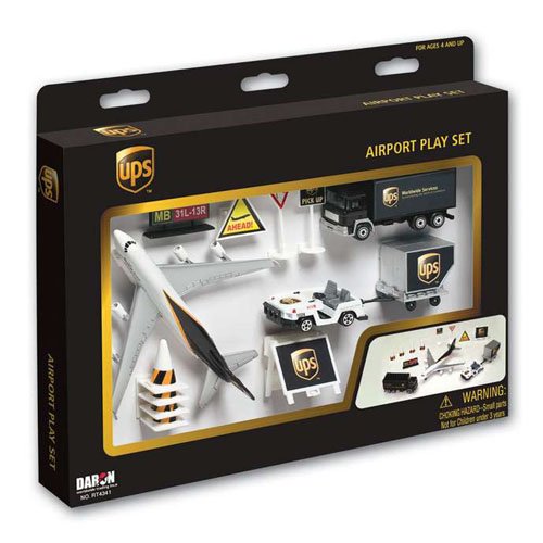 Official UPS 13 piece Airport playset. Made from durable diecast metal and plastic. Comes with official licensed insignias. Comes with official licensed insignias. Ages 3 and up.