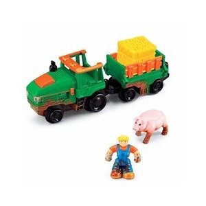 - Includes farmer figure, pig, tractor and wagon, and a hay bale